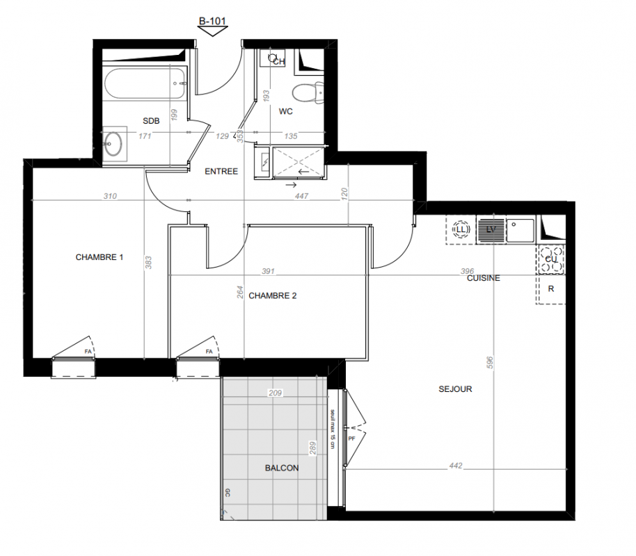 287 100€ Appt. T3 65.25m2 2ème