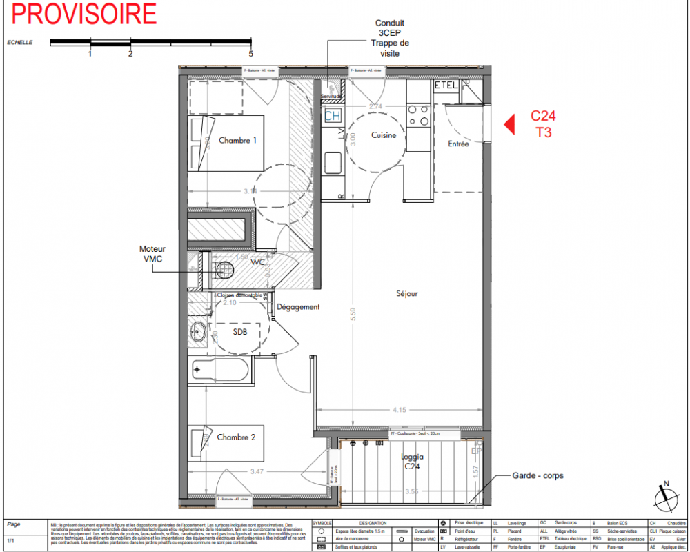 650 000€ Appt. T3 62.64m2 1er