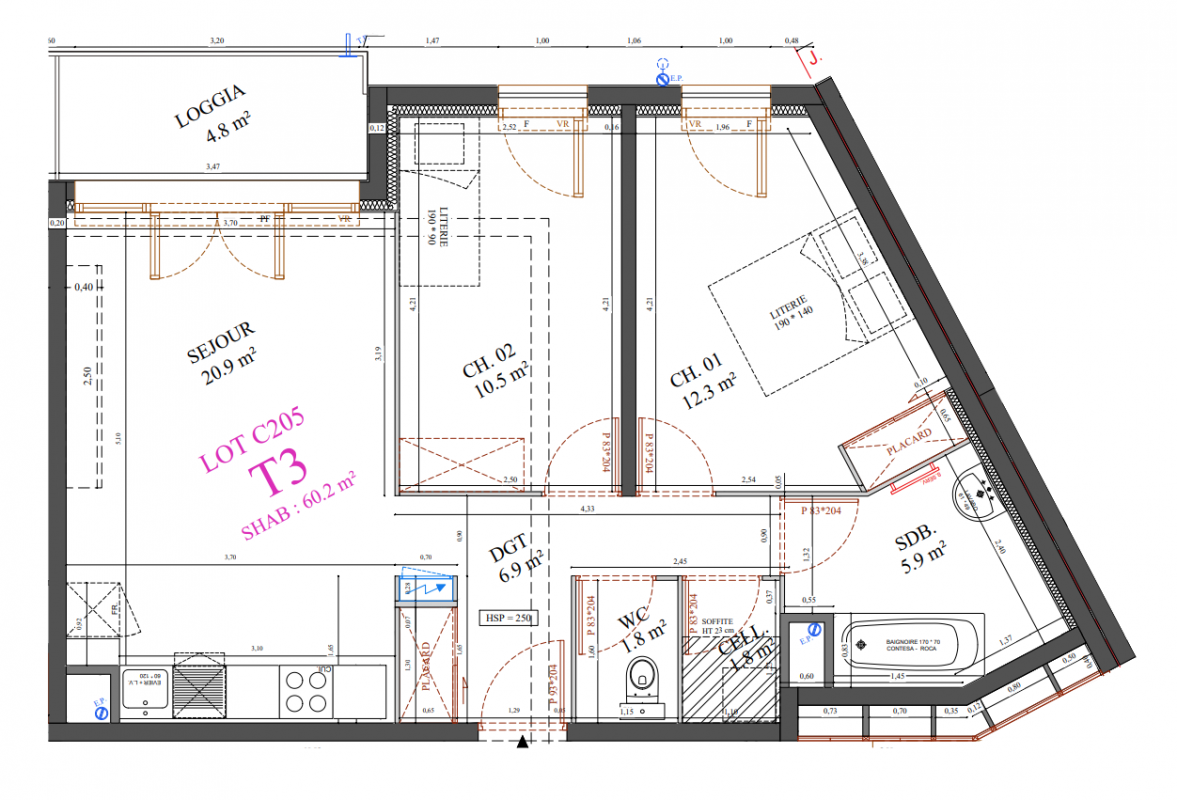 253 000€ Appt. T3 60.1m2 1er