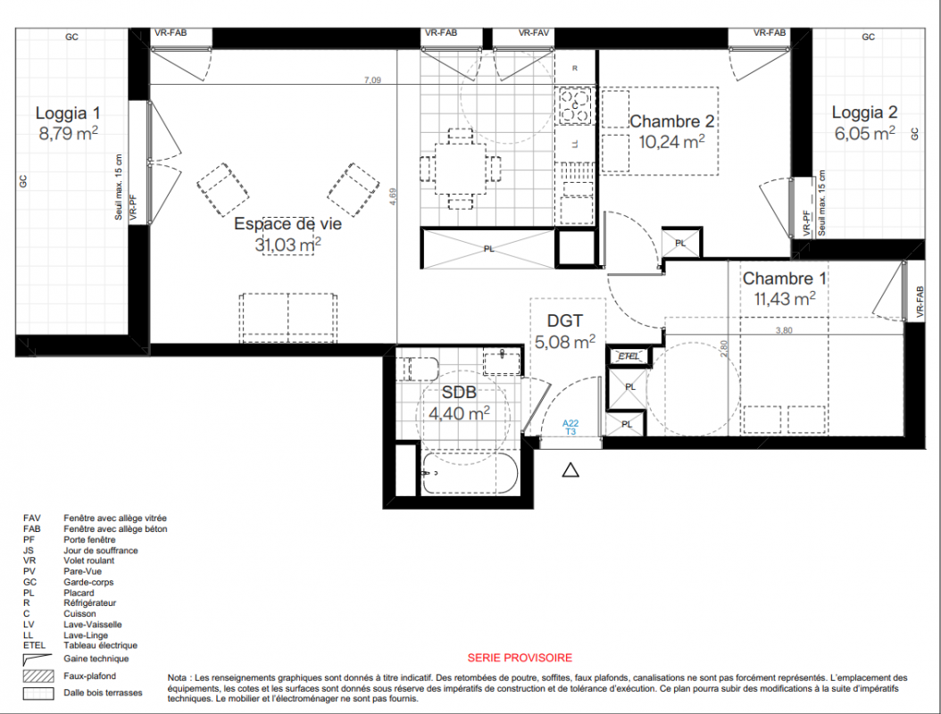331 200€ Appt. T3 62.18m2 1er
