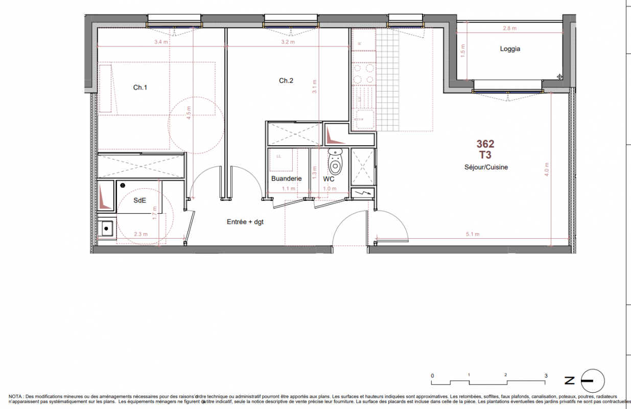 428 815€ Appt. T3 62.5m2 0-RDC