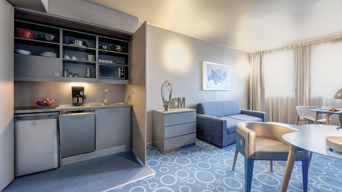 Située dans le quartier d'affaires Inovel Parc Nord, la résidence propose des appartements, meublés et équipés, pouvant accueillir jusqu'à 4 personnes. La résidence dispose de plusieurs espaces communs spacieux : salle de restauration, sauna, salle de sport, 4 salles de séminaire, bar, espace de co-working... L'établissement est à 5 minutes à pied seulement du tramway qui permet de rejoindre facilement Paris. La gare de Montparnasse et l'aéroport de Paris-Orly sont respectivement à 15 et 16 kilomètres de la résidence, le Château de Versailles est à 7 kilomètres et la Tour Eiffel à 12 kilomètres.