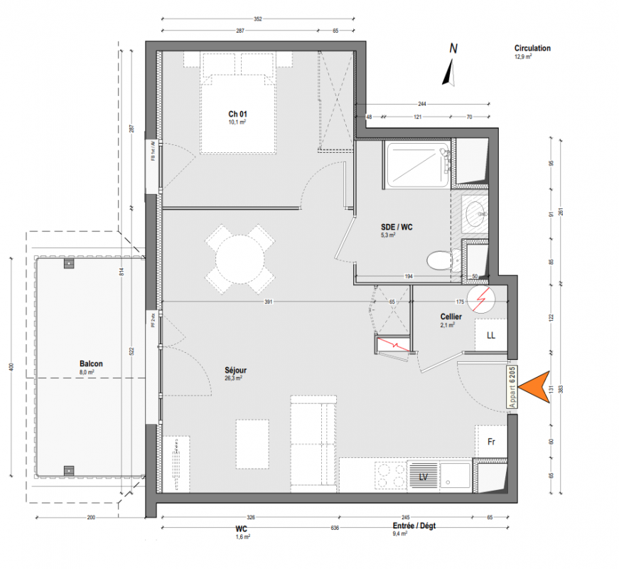 163 000€ Appt. T2 45m2 2ème