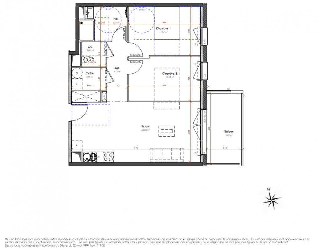 209 899€ Appt. T3 59m2 1er