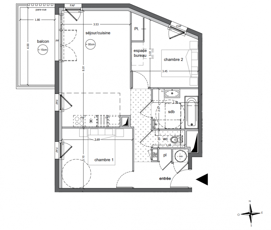 319 000€ Appt. T3 55.52m2 0-RDC