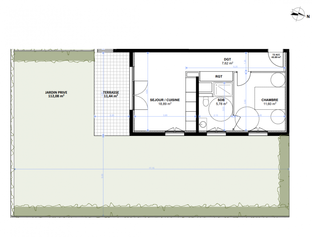 195 139€ Appt. T2 44m2 3ème